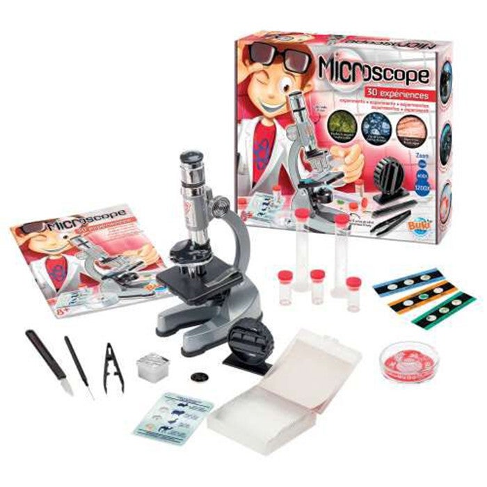 Découvre l'infiniment petit avec ce kit doté d'un microscope et de matériel pour réaliser 30 incroyables expériences ! A partir de 8 ans