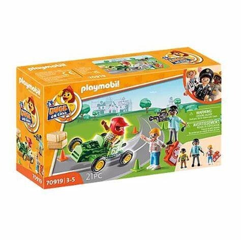 La tension monte ! C'est la finale de la course de caisses à savon et même la presse est sur place ! Mais soudain, un conducteur perd le contrôle. Heureusement, Mikey est immédiatement sur place et s'occupe des blessés.Dimensions : 24,8 x 14,2 x 7 cm (LxPxH).Expérience de jeu ludique pour les enfants de 3 à 5 ans.Scène prête pour le jeu.Le set contient un personnage DUCK ON CALL ainsi que deux personnages Playmobil.Voiture caisson à savon.Plaquette d'autocollants.