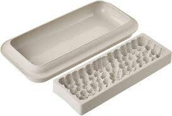 Kit composé de 2 moules : une base rectagulaire aux bords arrondis et un moule pour recréer de façon très réaliste un tapis de framboises en 3D