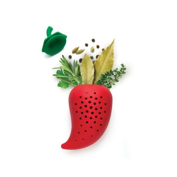 Sur le même principe que la boule à thé, remplissez l'infuseur des aromates de votre choix (thym, lauriers, romarin, persil...), refermez, glissez et laissez infuser ! Laissez libre cours à vos envies et apporter une touche de piment à votre cuisine !